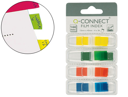 Paquete de 140 banderitas separadoras en 4 colores surtido. Marcadores de 12×45 mm en plástico transparente.