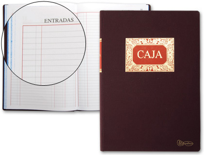 Libro contable de registro de caja tamaño folio. Libro de caja con 100 hojas de 102 g/m2.